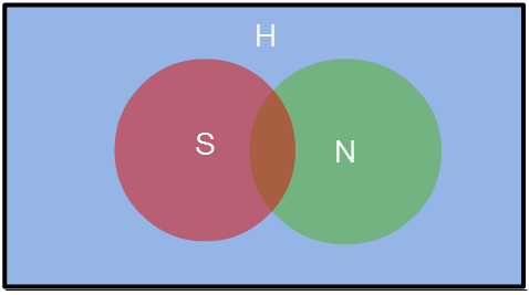If the supernatural (S) is distinct from the natural (N), and they do not overlap at all, then what are all the religious claims based on? By this definition of non-interaction Natural human religious entities (theists) cannot experience the Supernatural; and since there are no interactions from S to N we don’t get any miracles to reveal the Supernatural either.