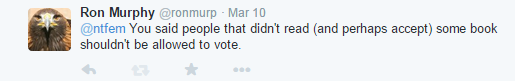 And, being the true blue democracy loving UKIP, she decides that taking the vote away is a good thing? Yes, I know she was being sarcastic (I hope), so I play the game and ask about her support for disenfranchisement.