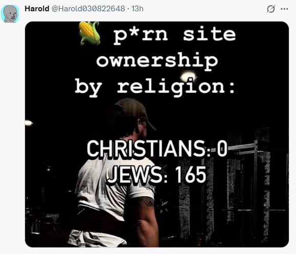 This is a common claim. The claim that porn site ownership breaks down as “Christians: 0, Jews: 165” is false and not based on any credible data. There is no authoritative dataset that tracks the religion of owners of adult websites in this way, and the numbers themselves are implausible on their face. The global adult industry is large, fragmented, and often opaque in ownership structure (many sites are owned by companies, holding groups, or shell entities across multiple jurisdictions), making such a precise religious tally impossible to verify. The claim appears to originate from internet memes and unsourced lists, not from research or industry reporting.