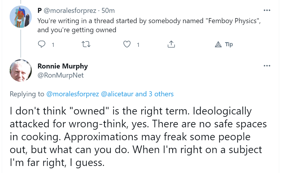 In fact Tall Transwomen are also a subset of Men, the intersection of Transwomen and Tall Men – we love a bit of intersectionality. Ash’s intention is to try to illustrate what she thinks is Jenkinson’s error. She thinks that saying “Transwomen are not women” is the same kind of error as “Tall men are not men” because she thinks that Transwomen are actually women, as if there is no significant difference.