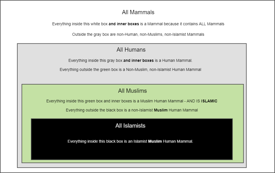 • They really think there are two mutually exclusive sets of Muslims – Islamic Muslims and non-Islamic Muslims (Islamists) – but they would still have to understand they are both Muslims. You know they know this by rejecting my suggestion they are playing “Nothing to do with Islam”