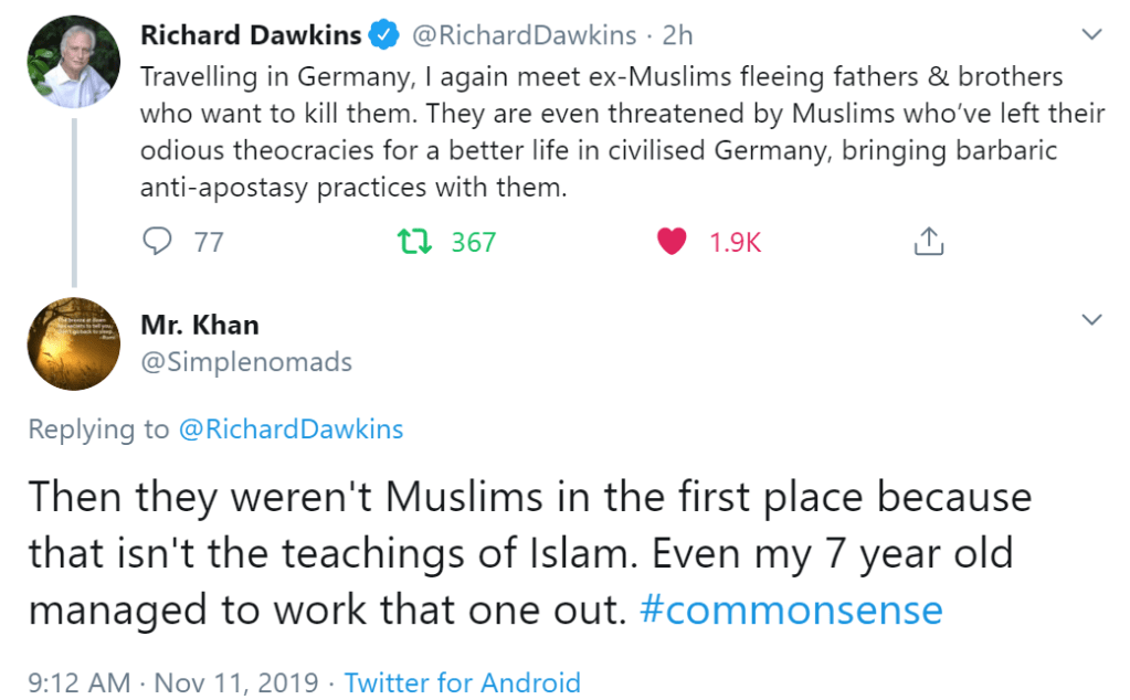 Let that sink in. I ask you to do this, not to pick on Saira, but to point out that to declare criticism of Islam to be racism is a very common defensive stance we see regularly.