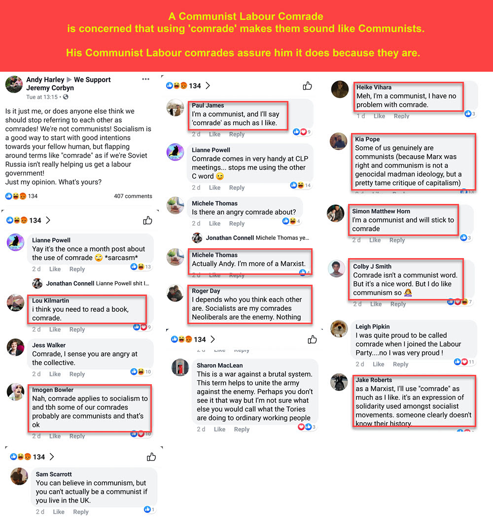 And, if you still think Labour isn’t in danger of becoming another Communist Party, a People’s Popular Front of Islington, or an Islington People’s Popular Front, here is a typical comment section from one of the more popular Facebook groups supporting Corbyn and McDonnell: